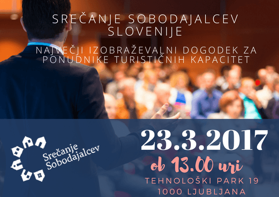 Kdaj: 23.03.2017 od 13.00 – 17.00 Kje: Tehnološki park Ljubljana, stavba B Dodatne informacije:www.srecanje-sobodajalcev.si